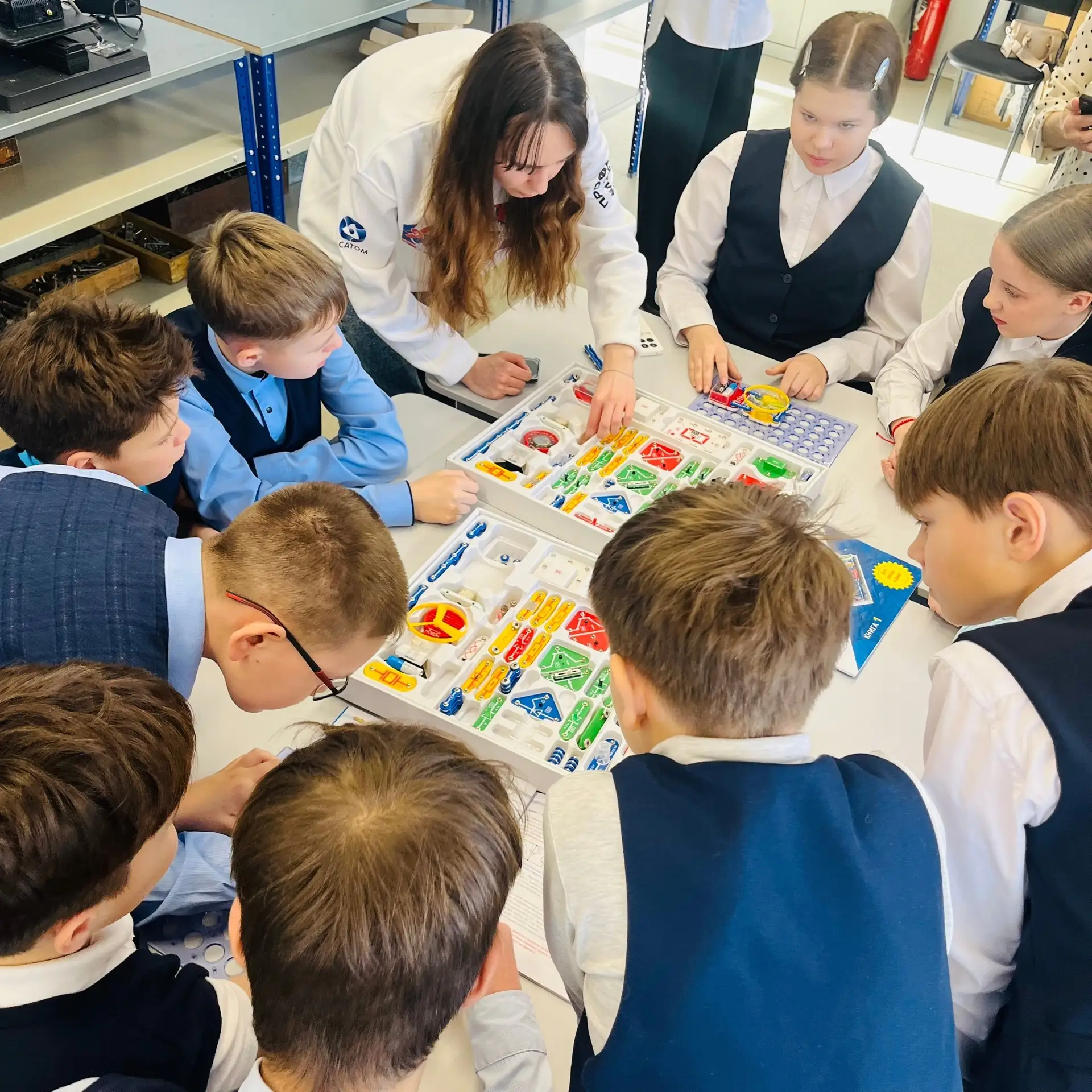 На мастер-классе ребята своими руками собирали электронные конструкторы. От простых цепей к более сложным схемам — под чутким руководством студентов у школьников всё получилось!
