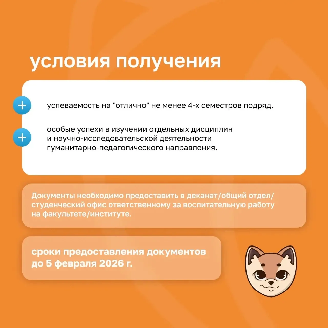 По всем вопросам можно обратиться в Центр стипендиальных программ, где специалисты помогут оформить документы.